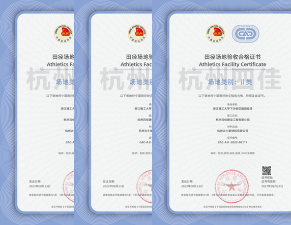 → 體育設施行業一級能力認證、12項施工設備專利、中國田徑協會會員、
